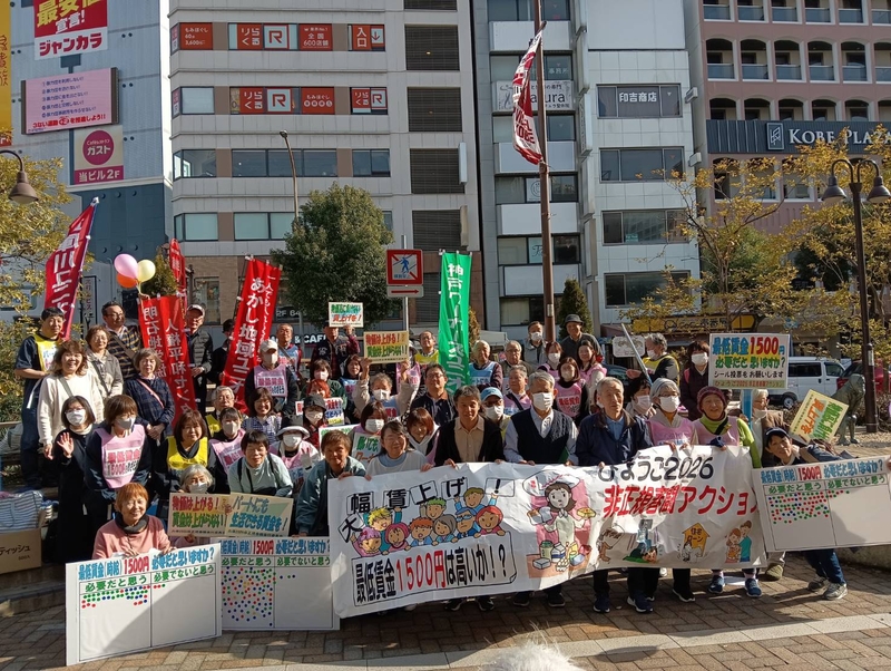 「ひようご2026非正規春闘アクション」を2月23日、元町駅周辺で時給1500円の実現をめざしシ―ル投票を取組みました。